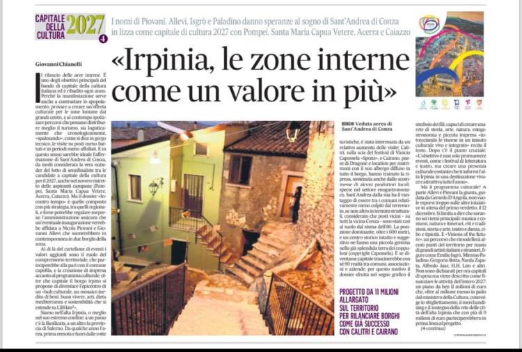 La candidatura di Sant’Andrea di Conza a Capitale Italiana della Cultura 2027 è una sfida ambiziosa di valorizzazione del territorio dell’Alta Irpinia e del suo ricco patrimonio culturale e naturale. Coinvolgendo 25 Comuni, il progetto Incontro Tempo si fonda sui valori della comunità e della storia, intrecciando arte, tradizioni e paesaggi in un tessuto culturale vivo e integrato. L’obiettivo è non solo promuovere eventi, come i celebri festival di letteratura e teatro di Sant’Andrea di Conza, ma creare una presenza culturale costante che trasformi l’Alta Irpinia in una destinazione vivace e attrattiva tutto l’anno.